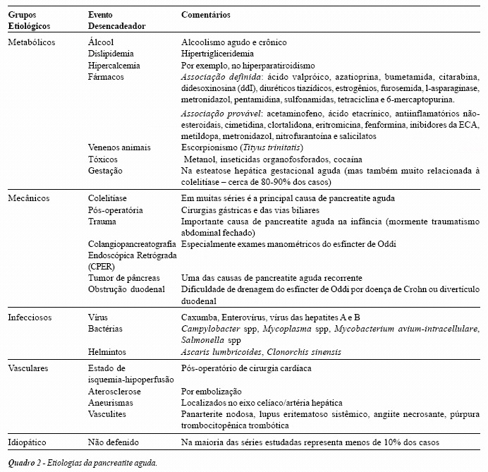 Embora Biliar e Alcoólica sejam as mais comuns, você deve investigar causas secundárias em casos não óbvios.
