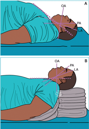 O objetivo é alinhar os eixos oral, laríngeo e faríngeo. A posição correta é a “sniffing position”.