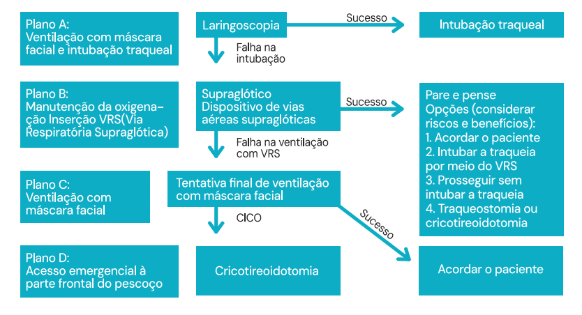 - Plano A: Ventilação com máscara facial e intubação traqueal.