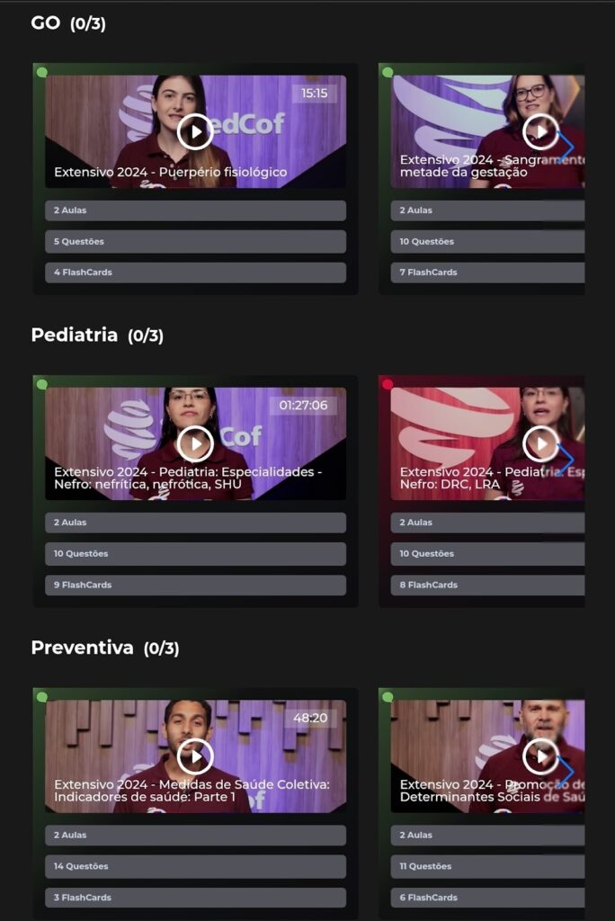 Na plataforma de alunos MedCof, você tem acesso a aulas gravadas para assistir no horário que mais lhe convier, CofExpress para aqueles dias corridos que sobra pouco tempo, flashcards para momentos de revisão, questões direcionadas e ainda mais. Dessa maneira, seu estudo se torna mais fácil e adaptável a sua realidade, independentemente da residência que você vai tentar.