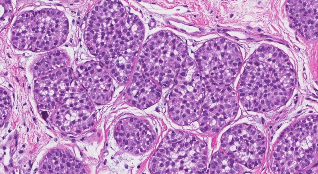 Para diagnosticar este tipo, é realizado um exame anatomopatológico, utilizando técnicas como punch ou core biopsy, além de exames de imagem como mamografia e ultrassonografia das mamas.