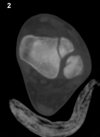 Reconstrução tomográfica da tíbia distal com a técnica MPR no plano transversal. Fonte: https://www.mskrad.com.br/post/fratura-de-tillaux-juvenil