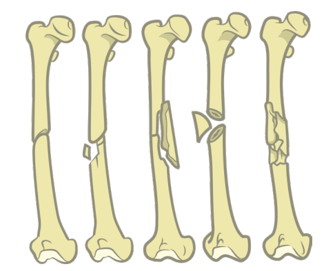 Tipos de fratura conforme gravidade. Fonte: Acervo de aulas do Grupo MedCof.