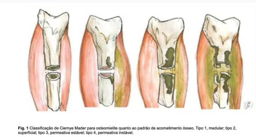 Classificação de Cierny e Mader – Scielo. Fonte: https://ortopedistaemsaopaulo.com.br/osteomielite/