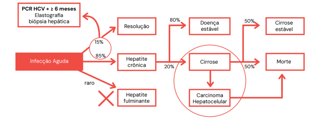 - História Natural: O grande perigo é a cronificação. Cerca de 80% dos casos agudos tornam-se crônicos. Desses, 20% evoluem para cirrose em 20-30 anos.