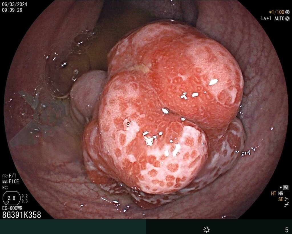 Pólipo Hamartomatoso juvenil. Fonte: https://endoscopiaterapeutica.net/pt/casosclinicos/polipo-hamartomatoso-juvenil-solitario-pediatrico-relato-de-caso-e-revisao-de-literatura/