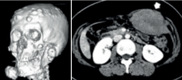 • Tumores Desmoides (origem no tecido conjuntivo, benignos, mas localmente agressivos e recidivantes, frequentemente desencadeados por trauma cirúrgico).