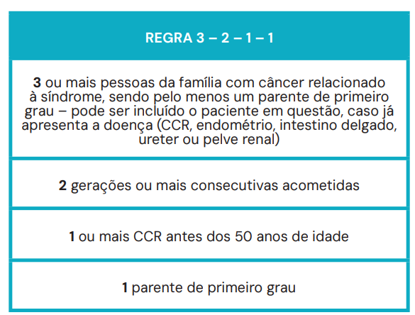 Diagnóstico: Critérios de Amsterdam (Regra 3-2-1-1)